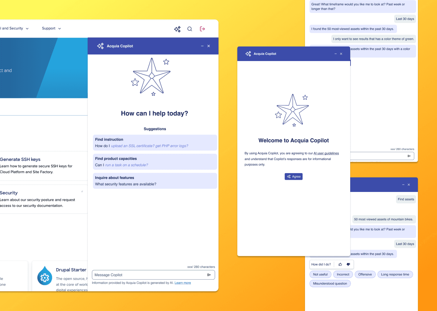 As the sole designer, designed an AI copilot tool from the ground up, delivering a unified experience across all Acquia products to help users complete their tasks more efficiently.